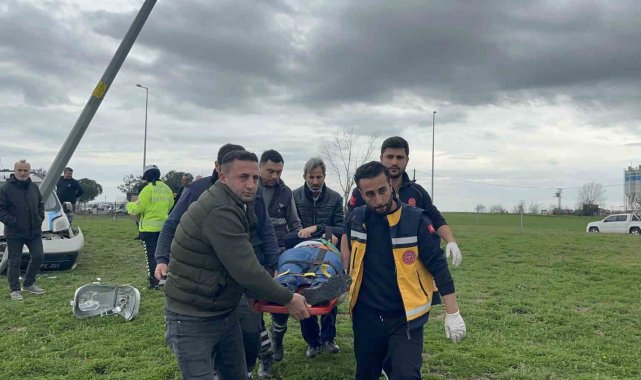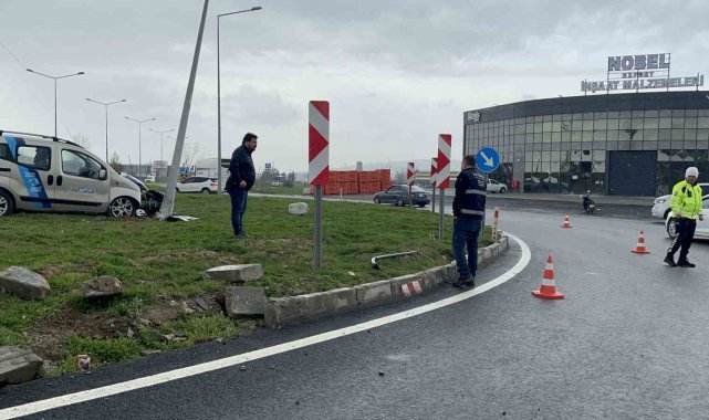 Dönel kavşakta direğe çarpan aracın sürücüsü yaralandı