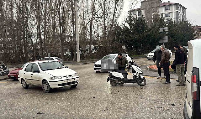 Dönel kavşakta motosiklet ile otomobil çarpıştı