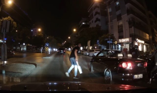 Olay, Karşıyaka Girne Caddesi'nde saat 21.30 sıralarında meydana geldi. Edinilen bilgiye göre, trafikte seyir halinde olan 35 CKG 604 plakalı spor otomobilin sürücüsü, aynı yönde ilerleyen bir motosiklet sürücüsü ile tartıştı. Bu esnada otomobil sürücüsü araçta kılıf ile muhafaza ettiği döner bıçağını çıkartarak tartıştığı kişilerin üzerine yürüdü. Ardından motosiklet sürücüsünün olay yerinden ayrılmasıyla kavga sona erdi.