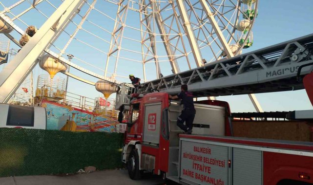 Balıkesir'in Edremit ilçesine bağlı turistik Akçay Mahallesi'nde yaşanan elektrik kesintisi, lunaparkta eğlenen vatandaşların dönme dolapta mahsur kalmasına neden oldu. Olay yerine sevk edilen itfaiye ekipleri, 42 metrelik merdivenli araçla mahsur kalan 3 kişiyi kurtardı.