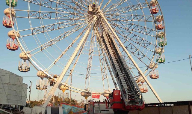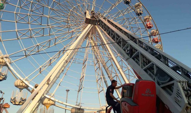 Dönme dolapta mahsur kalan 3 kişi, 42 metrelik itfaiye merdiveniyle kurtarıldı