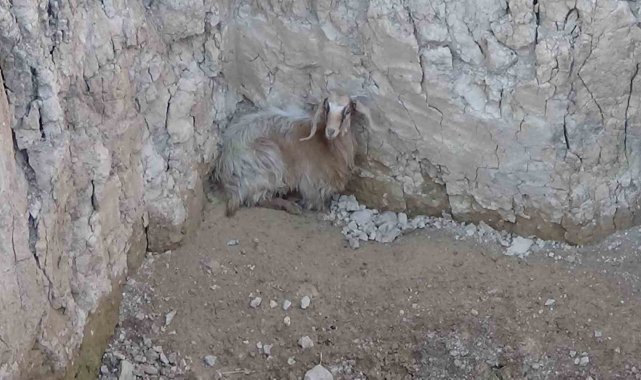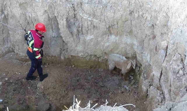Dört metrelik çukura düşen keçi itfaiyece kurtarıldı