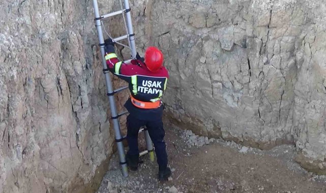 Uşak Karma Organize Sanayi Bölgesi yakınlarında arazide meydana gelen olayda, Mustafa Tuna isimli çiftçi hayvanlarını otlattığı sırada sürüde bulunan bir keçisinin tarladaki çukura düştüğünü fark etti.