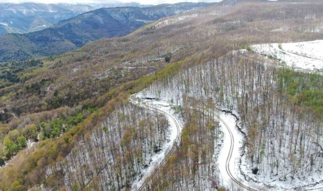 Kastamonu'da kar ve ormanlardaki renk cümbüşünün buluşması ortaya kartpostallık görüntüler çıkarttı. Dört mevsimin adeta tek fotoğraf kamerasında buluştuğu doğa, fotoğraf tutkunlarından da ilgili görüyor.