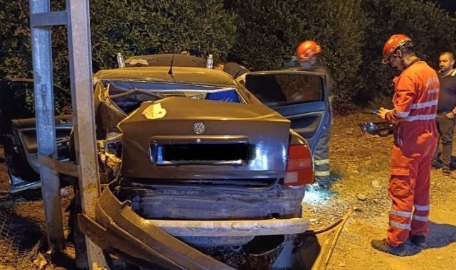 Hatay'da elektrik direğine çarparak zeytinliğe uçan otomobilin sürücüsü yaralandı.