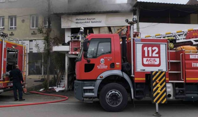 Hatay'da motosiklet tamircisinde çıkan yangın büyümeden söndürüldü.