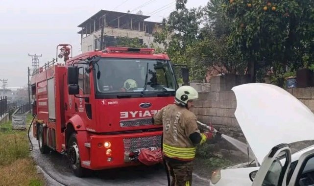 Hatay'ın Dörtyol ilçesinde otomobilde çıkan yangın büyümeden itfaiye ekipleri tarafından söndürüldü.