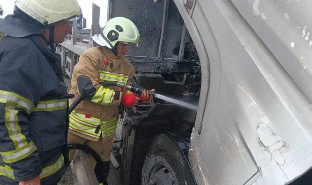 Hatay'da seyir halindeyken motor kısmı alevlere teslim olan tırda çıkan yangın, kontrol altına alındı. Yangın; Payas-Dörtyol istikameti otoyol üzerinde yaşandı. Seyir halindeki tırın motor kısmında yangın çıktı. İhbar üzerine olay yerine sevk edilen itfaiye ekipleri, yangına hızlı şekilde müdahale etti. Yangın, aracı sarmadan kontrol altına alınırken, olayın ardından tırda soğutma çalışması gerçekleştirildi.
