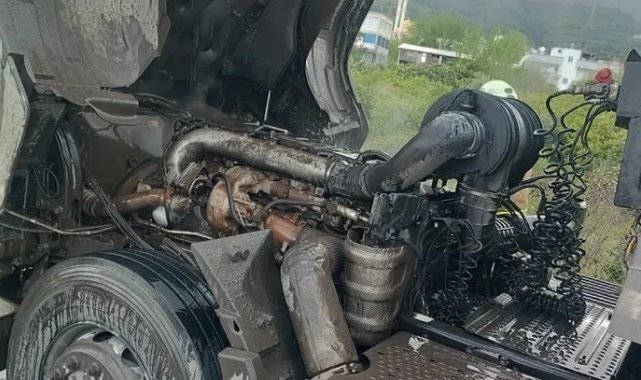 Dörtyol'da tırın motorunda yangın çıktı