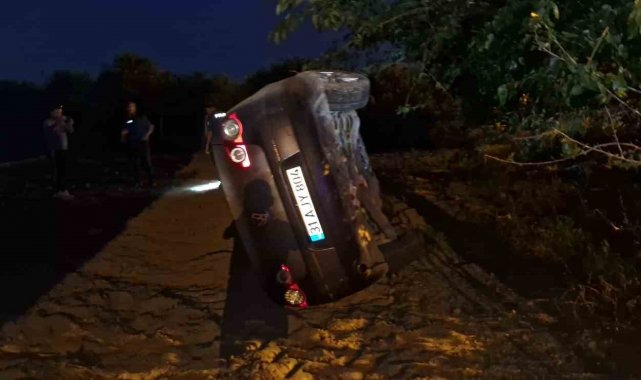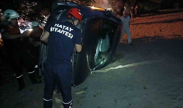 Hatay'da takla atarak yan dönen otomobilin sürücüsü yaralandı.