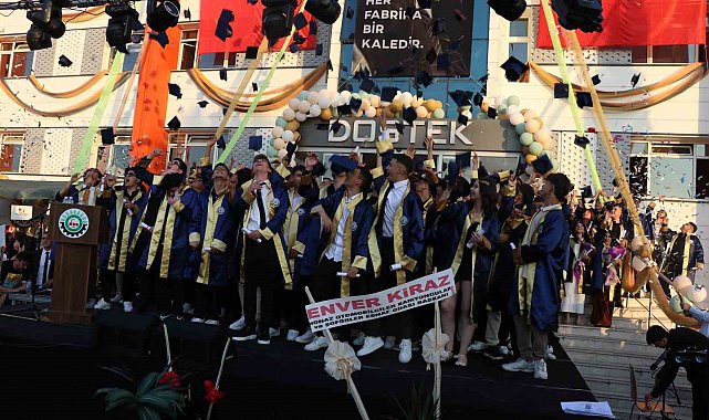 DOSTEK Koleji'nde elektrik-elektronik teknolojileri, moda tasarım, tekstil teknolojileri, endüstriyel otomasyon teknolojileri ve makine ve tasarım teknolojisi alanlarında eğitimini tamamlayan 230 öğrenci mezuniyet heyecanı yaşadı.