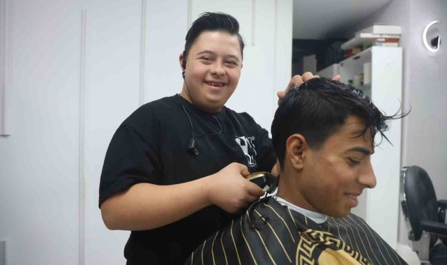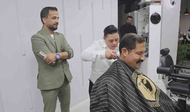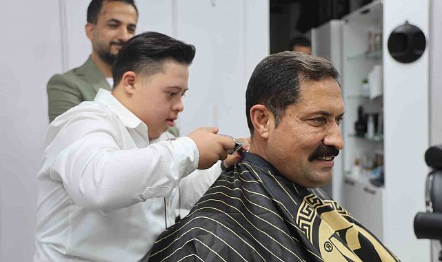 Hatay'da down sendromlu kuaför Şükrü Dağlı'nın 3 Aralık Dünya Engelliler Günü'nde ilk müşterisi Vali Mustafa Masatlı oldu. Şükrü ve Vali Masatlı arasında geçen tıraş ücreti diyaloğu ise gülümsetti.