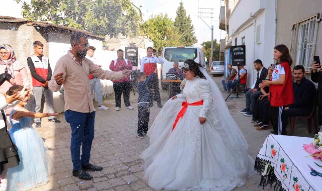 Dulkadiroğlu ilçesi Erkenez Mahallesi'nde yaşayan Hacer ve Sayit Demircik çiftinin 33 yaşındaki kızı Melek için, Kahramanmaraş Büyükşehir Belediye Başkanı Fırat Görgel'in talimatlarıyla unutulmaz bir düğün organizasyonu düzenlendi. Ailenin evinin bahçesinde yapılan etkinlikte müzikler çalındı, oyunlar oynandı, kına yakıldı ve Melek'in mutluluğu yüzüne yansıdı. Düğüne mahalle sakinleri ve yakın akrabalar da katılarak Melek'in sevincine ortak oldu. Belediye Sağlık ve Sosyal Hizmetler Daire Başkanlığı Engelliler Şube Müdürlüğü koordinesinde gerçekleştirilen organizasyona, birimin çatısı altında faaliyet gösteren gönüllü gençlik hareketi üyeleri de destek verdi. Gençlerin katkısıyla süslenen alan ve hazırlanan etkinliklerle Melek'in hayali adeta bayram havasında kutlandı.