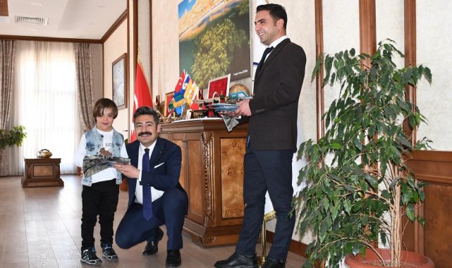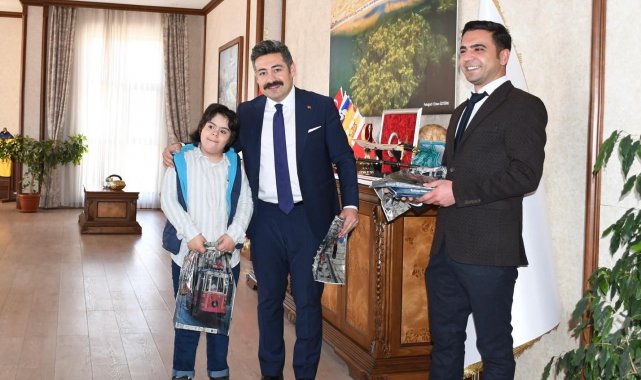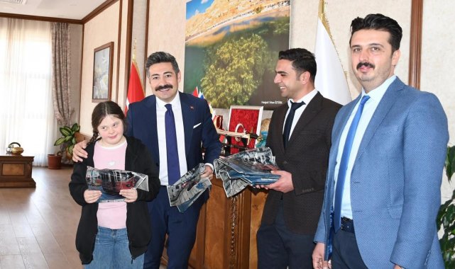 Bitlis'in Adilcevaz ilçesinde eğitim gören down sendromlu öğrenciler Adilcevaz Kaymakamı Nurhalil Özçelik'i ziyaret etti.