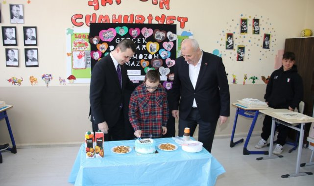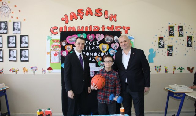DÜZCE(İHA) –Düzce'nin Çilimli ilçesinde Kaymakam Furkan Alpay ile Belediye Başkanı Yılmaz Yıldız 21 Mart Dünya Down Sendromlular Günü vesilesiyle, özel eğitim alan öğrencilerle bir araya geldi.