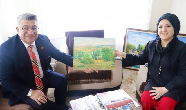 Dumlupınar Üniversitesi (DPÜ) Rektörü Prof. Dr. Süleyman Kızıltoprak, Tavşanlılı Ressam Dilek Kocaman Yılmazer'in atölyesini ziyaret ederek sanatçıya büyük bir onur yaşattı.