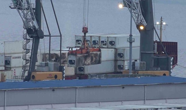 Kamerun bayraklı "Aurelia" isimli konteyner gemisi, Karadeniz'de dron saldırısına uğramasının ardından Samsun Limanı'na demirledi.