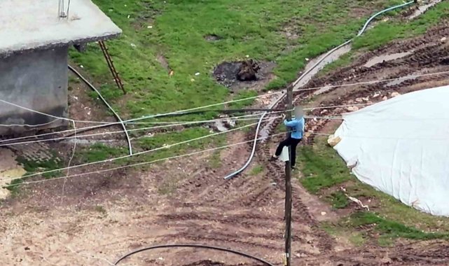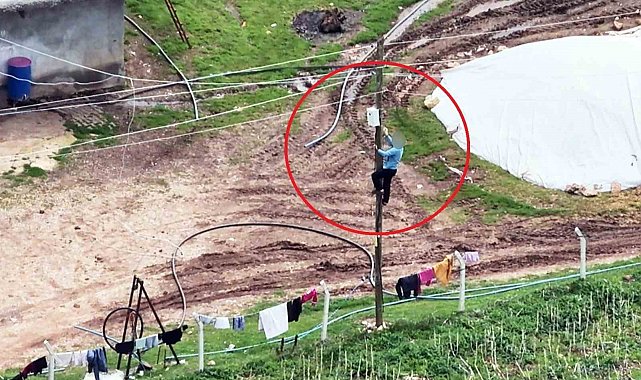 Dron kamerasına anlık olarak yansıyan olayda, dronla yapılan kaçak elektrik denetimi yapıldığını fark eden bir şahsın, hızlıca kaçak elektrik hattının bağlı olduğu elektrik direğine tırmandığı görüldü. Drona yansıyan görüntülerde şansın, kaçak elektrik amacıyla kullanılan hatları bağlantı noktalarında ayırdığı ve kaçak elektrik için kullanılan kabloları da bir eve teslim ettiği tespit edildi.