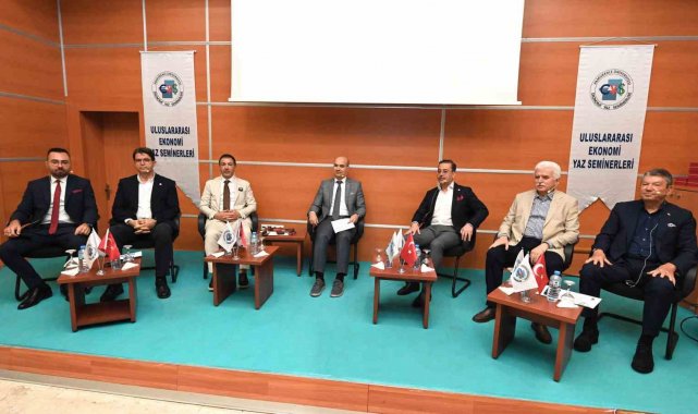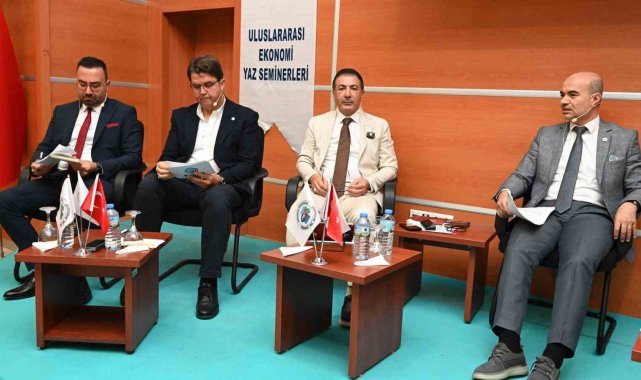 Açış konuşmasını Pamukkale Üniversitesi (PAÜ) Rektörü Prof. Dr. Mahmud Güngör'ün yaptığı Uluslararası Ekonomi Yaz Seminerleri (EYS) kapsamında gerçekleştirilen Denizli Ekonomisi Paneli'nde konuşan DTO Yönetim Kurulu Başkanı Uğur Erdoğan, odalarının Denizli ekonomisine ve sektörlerine katkısını, hizmetleri ile projelerini anlattı.