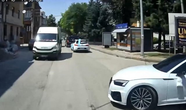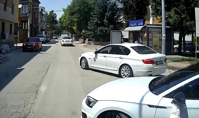 Eskişehir'de iki sokak kesişimindeki kavşakta düğün konvoyunun rahat geçişi için yol kesen sürücü, trafikteki bir aracın araç içi kamerasına yansıdı.