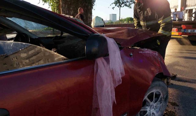 Kaza, Samsun'un Canik ilçesi Karşıyaka Mahallesi viyadük altında meydana geldi. Edinilen bilgiye göre, kız evinden gelini alıp fuar içindeki düğün salonuna giden düğün konvoyunda bulunan Turan Ç. idaresindeki 06 DLM 724 plakalı otomobil, kontrolden çıkarak refüjdeki oturaklara çarptı ardından yol ortasında ters döndü. Kazada, sürücü Turan Ç. ile araçta bulunan Gülsevim Ç., Sevgi Ç. ve Fatma Ç. yaralandı. Yaralılar, ambulanslarla Samsun Eğitim ve Araştırma Hastanesi, Gazi Devlet Hastanesi ve özel bir hastaneye kaldırılarak tedavi altına alındı. Polis kazayla ilgili inceleme başlattı.