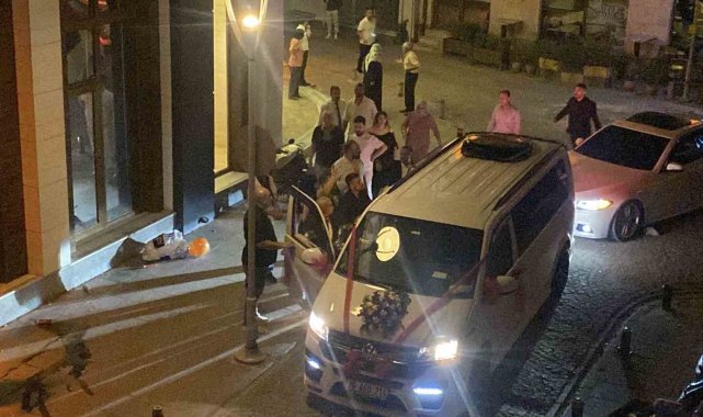 Düğün konvoyundaki kalabalık grup arasında gerginlik yaşandı