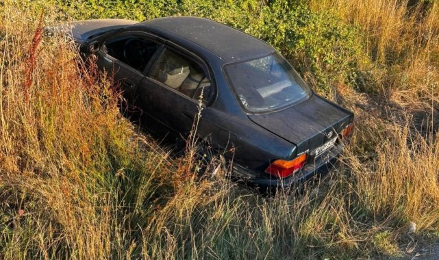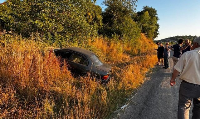 Yol kenarındaki çalılık alana giren otomobilde şans eseri yaralanan olmadı.