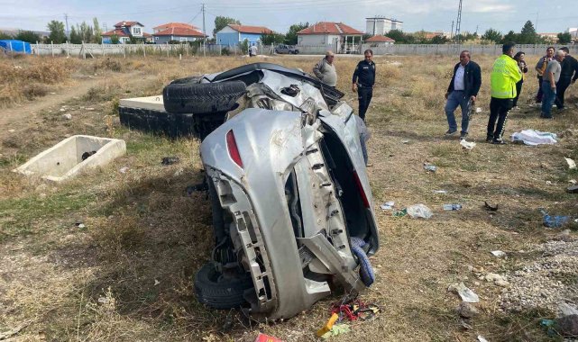 Çorum'un Alaca ilçesinde düğün konvoyundaki otomobilin tarlaya devrilmesi ile 2 kişinin yaralandığı kazanın görüntüleri ortaya çıktı. Kazaya konvoyda öne geçmek isteyen başka bir sürücünün sebep olduğu ortaya çıktı.