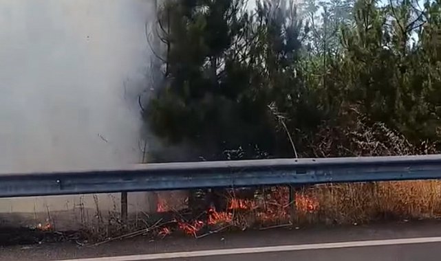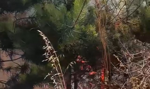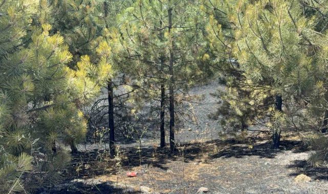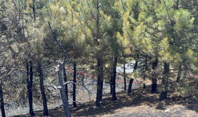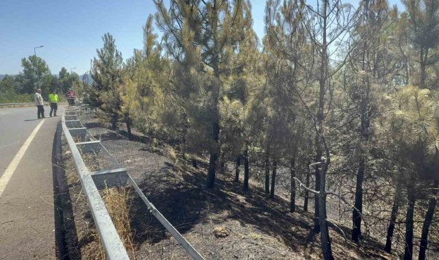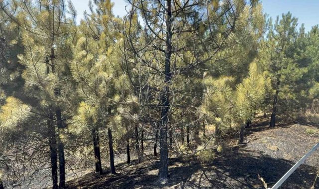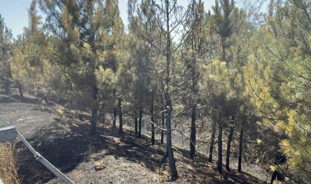 Yangında yol kenarındaki otluk alan ile birlikte çamlık olan bölgede kısmi yanmalar oluştu.
