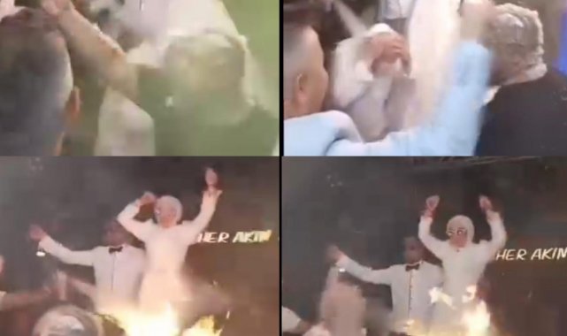 Mersin'in Silifke ilçesinde gerçekleştirilen düğün merasiminde yaşanan olay, konuklardan birinin cep telefonu kamerasına yansıdı. Sosyal medyada da paylaşılan görüntülerde, düğün merasimi sırasında düzenlenen eğlencede gelin ve damat pistte oynadığı sırada köpüklü ve meşaleli şov gerçekleştirildiği anlar yer aldı. Eğlence sırasında kafasına köpük sıkılan bir kişinin saçlarının, elde gezdirilen meşaleden sıçrayan kıvılcımlar nedeniyle alev aldığı anlar da görüntülere yansıdı. Kısa süreli paniğin yaşandığı olayda, saçları alev alan kişi alevleri eliyle söndürerek yanmaktan kurtuldu.