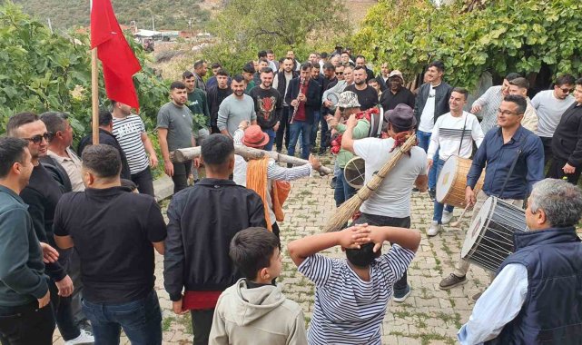 Demirci'ye bağlı Sevinçler Mahallesinde yıllardır sürdürülen geleneğe göre, düğün törenlerinde mahalle sakinleri, Türk bayrağı açıp davul zurna çalarak damadın akrabalarını evlerinde ziyaret ediyor.