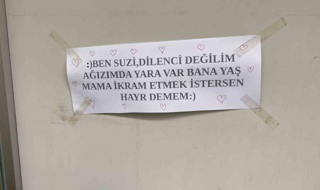 Yunus Emre Caddesi üzerinde bulunan işletmede çalışan hayvansever esnaf, sokakta besledikleri sevimli kedi için anlamlı bir davranışta bulundu. Hayvansever personel, kedinin ağzından yazılmış bir notu dükkan duvarına astı. Bahse konu notta, "Ben Suzi, dilenci değilim. Ağzımda yara var, yaş mama ikram etmek istersen hayır demem" ifadeleri yer aldı. Kedi yuvasının üzerinde ise, "Hayvanlara merhametli olmayı peygamberimden öğrendim" yazılı bir kaplama bulunduğu görüldü. Çevreden geçen vatandaşlar, ortaya çıkan ilginç görüntüyü cep telefonu kamerası ile fotoğrafladı.