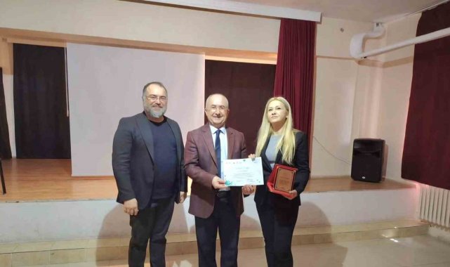 Program sonunda İlçe Milli Eğitim Müdürü Salim Karaboğa, katkılarından dolayı Dr. Şafak Horzum'a ve proje yürütücüsü Özlem Akbudak'a plaket takdim etti.