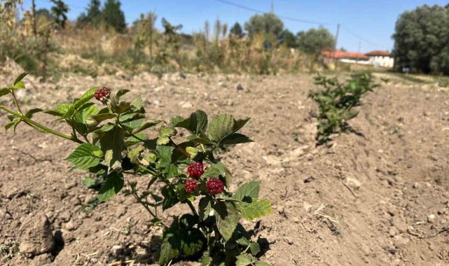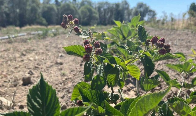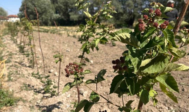 Dumlupınar'da böğürtlen fideleri ilk meyvelerini verdi