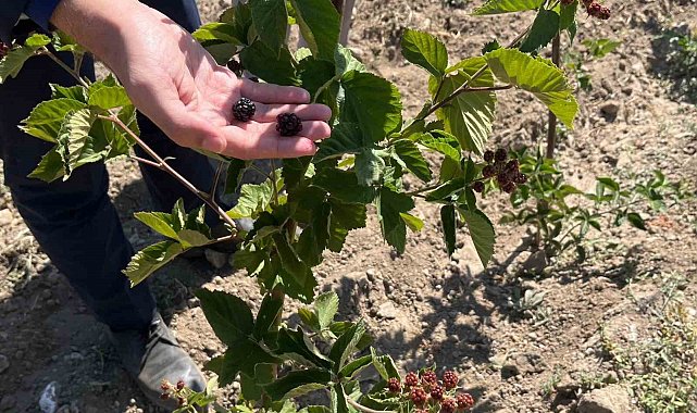 Kütahya'nın Dumlupınar İlçe Kaymakamlığı ve Kütahya İl Tarım ve Orman Müdürlüğünün destekleriyle alınıp dikimi yapılan tüplü böğürtlen fideleri ilk meyvelerini vermeye başladı.
