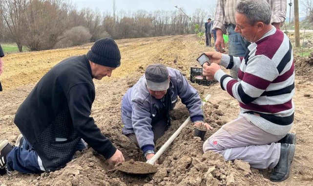 Dumlupınar'da böğürtlen fideleri toprakla buluşturuldu