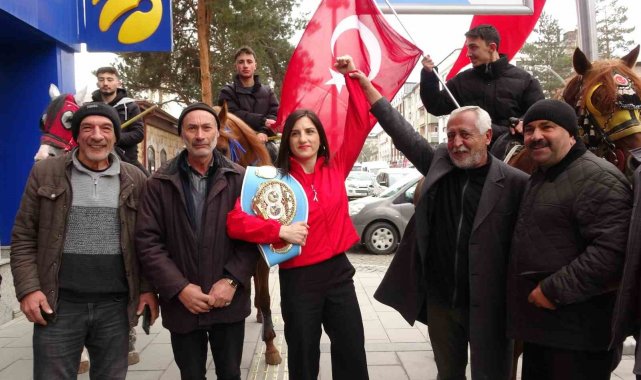 IBF Hafif Sıklet Dünya Şampiyonluğu unvan maçında rakibini nakavt ederek altın kemerin sahibi olan milli boksör Elif Nur Turhan, memleketi Bayburt'ta davul zurna ve atlar eşliğinde coşkuyla karşılandı.
