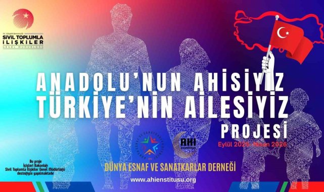 Dünya Esnaf ve Sanatkarlar Derneği, Aile Yılı'na özel kapsamlı bir proje başlatıyor. Dünya Esnaf ve Sanatkarlar Derneği, 'Anadolu'nun Ahisiyiz, Türkiye'nin Ailesiyiz' başlıklı yeni projesini eylül ayında başlatacak. İçişleri Bakanlığı Sivil Toplumla İlişkiler Genel Müdürlüğü'nün de desteğiyle hayata geçirilecek proje, 2025 yılının Cumhurbaşkanlığı tarafından 'Aile Yılı' ilan edilmesi doğrultusunda planlandı.