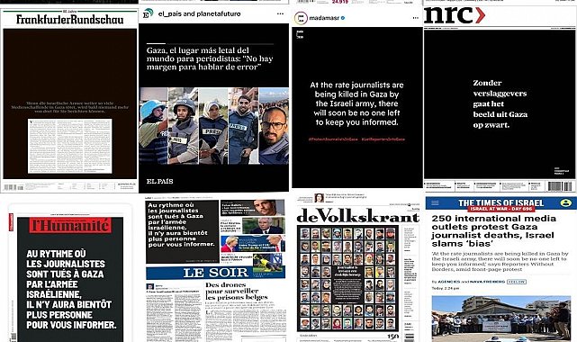 Dünya genelinde 70'i aşkın ülkeden 250'den fazla medya kuruluşu, İsrail'in Gazze Şeridi'nde basın mensuplarını öldürmesini protesto etmek amacıyla eş zamanlı olarak gazetelerinin ilk sayfaları ile web sitelerinin ana sayfalarını kararttı ve yayın durdurdu.