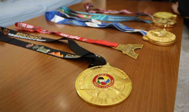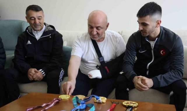 Dünya şampiyonu milli karateci Şamdan'dan Başkan Bıyık'a "madalyalı" ziyaret