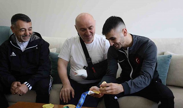 Darıca Belediyesi Eğitim ve Spor Kulübü sporcusu Eray Şamdan, şampiyona dönüşü, geçirdiği operasyon nedeniyle evinde istirahat eden Belediye Başkanı Muzaffer Bıyık'ı ziyaret etti.