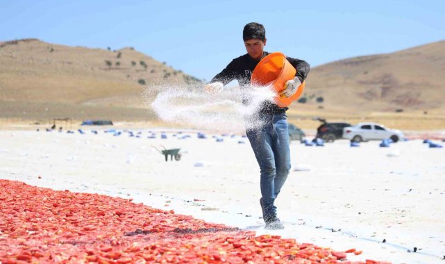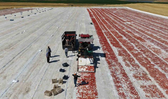 Elazığ'da 2 bin dönümde 600 işçinin emeği ile toplanıp kurutulan 15 bin 300 ton domates, başta Avrupa ülkeleri olmak üzere ABD, Fransa, İngiltere ve Hollanda'ya gönderilerek dünya sofralarını süslüyor.