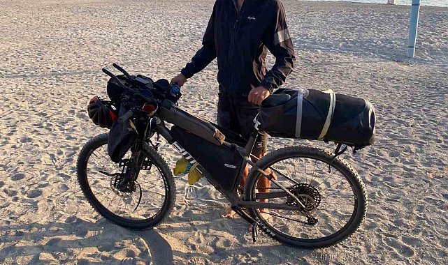 Dünya turundaki Alman bisikletçi Karapınar'da mola verdi