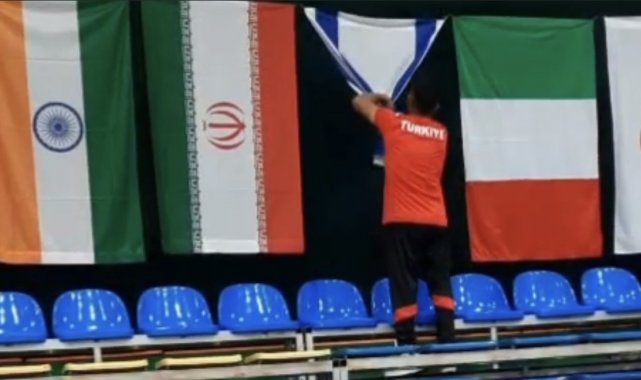 Dünya üçüncüsü oldu, soykırıma tepki göstermek için İsrail bayrağını düğümledi