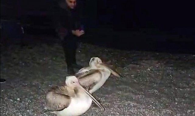Dün akşam saatlerinde Konyaaltı Sahili'ne gelen vatandaşlar, yetişkin 2 ak pelikanı görünce şaşkınlık yaşadı. O anları cep telefonuyla kayda alan vatandaşlar, yanına kadar gittikleri pelikanları ilgiyle izledi. Bir süre sonra bölgeden uzaklaşan pelikanların, yorgunluk nedeniyle sahile indikleri değerlendiriliyor.