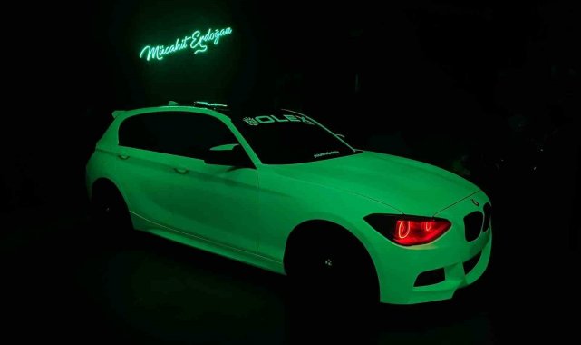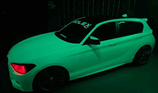 Eskişehir'de 16 yıldır boya koruma filmi kaplaması yapan esnafın özel malzeme ile kapladığı otomobil gündüzleri beyaz iken geceleri yeşil bir renge bürünüp adeta ışık kaynağı gibi parlıyor. Bu özelliğin dünyada 7 araçta olduğunu iddia eden esnaf, kapladığı araçla dikkatleri üzerine çekiyor.