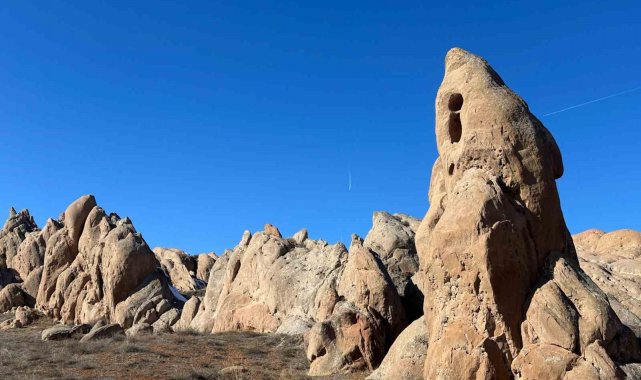Sivas merkeze bağlı Eğribucak Köyü eski ismiyle Gerne köyünde rengi ve yapısıyla Mars gezegenine benzetildiği için 'Dünya'daki Mars' olarak adlandırılan Eğribucak kayalıklarında nesli tükenme tehlikesi altında olan ve avlanması yasaklanan dağ keçisi sürüsü görüntülendi.