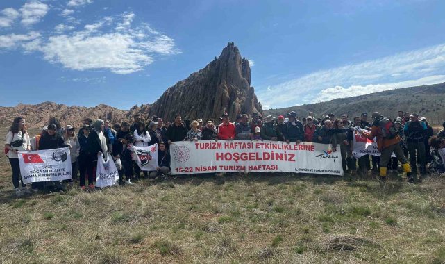Sivas'ta Turizm Haftası etkinlikleri kapsamında "Dünyadaki Mars" olarak bilinen Eğribucak Kayalıkları'nda doğa yürüyüşü düzenlendi.