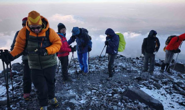 Dünyanın dört bir yanından gelen dağcılar, Ağrı Dağı zirvesine tırmandı