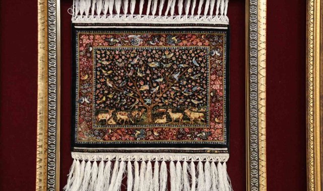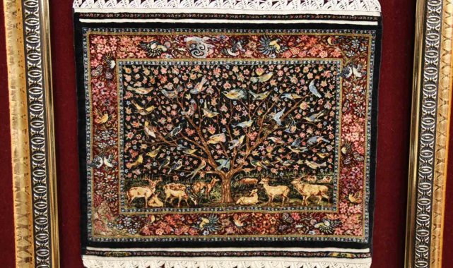 Halının deseninde sonsuzluğu simgeleyen 'Hayat Ağacı' teması yer alıyor. Kökeni Orta Asya'ya dayanan ve zamanla İskandinav mitolojisi ile Altay Şamanizmi gibi farklı kültürlerde de yer bulan bu motif, esere zamansız bir anlam kazandırdı. Desende ağaç figürünün yanı sıra hayvanlar, kuşlar ve bitkiler büyük bir incelikle işlendi. Her detayın canlı ve gerçekçi bir biçimde tasarlandığı halıda hakiki Bursa ipeği kullanıldı. 5 yıllık emeğin, 150 yıllık bir geleneğin ve yüksek bir teknik ustalığın ürünü olan bu özel halının maddi bir değerle ölçülemeyeceği, bu nedenle eserin 'paha biçilemez' olarak nitelendirildiği ifade edildi.